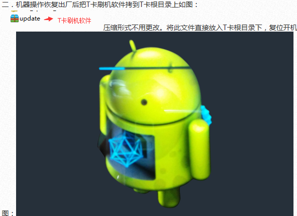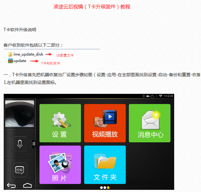 三.開機后等待1分鐘左右自動重啟,再次出現升級狀態條走完后,自動重啟,此時,可以拔掉T卡,開機后可以進入關于檢查一下版本號,